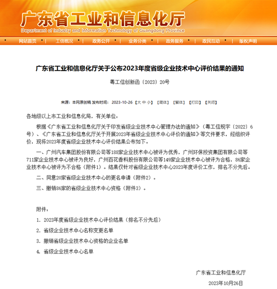 近日,广东省工业和信息化厅公布2023年度省级企业技术中心评价结果,九游在线官网j9有限公司顺利通过本次评价,连续多年获评省级企业技术中心称号。