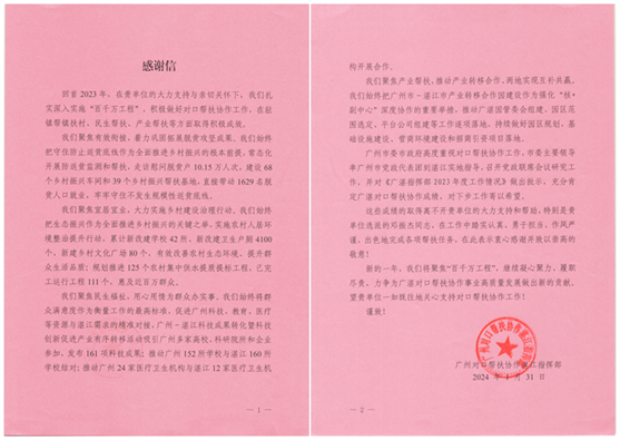 荣获“最美外派干部人才”称号,是对邓振杰同志派驻工作的充分肯定和表彰,也是对在其背后坚定支持广湛乡村振兴工作的九游在线官网j9的肯定。2023年,九游在线官网j9协助广湛消费帮扶平台向属下企业、轻工集团兄弟企业、国资企业等开展农副产品宣传,通过线上转发湛江特色农产品介绍、线下组织湛江端午节特色产品介绍会等,内部采购广湛消费帮扶农产品十余万元。