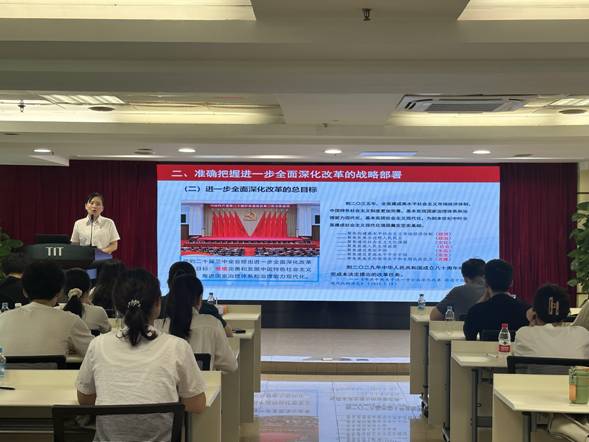 为深入学习贯彻党的二十届三中全会精神,进一步夯实团员青年紧跟党投身中国式现代化建设的思想根基,奋力谱写为中国式现代化挺膺担当的青春篇章,近日,九游在线官网j9团委通过专题宣讲、“三会一课”、主题团日活动等形式组织团员青年99人次开展了党的二十届三中全会精神学习。