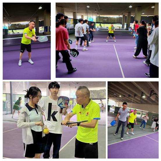 匹克球作为一种结合了网球、羽毛球和乒乓球元素的新兴运动,深深吸引了这群喜欢运动和探索的年轻人。经过教练动作示范和悉心指导,他们很快掌握了臂、腿、腰的协调发力技巧,从“零接触”迅速通关“巧发挥”。在 “一球定胜负”、“最佳搭档”和“限时垫球”等趣味匹克球友谊赛环节中,欢声笑语伴随着大汗淋漓,他们和球场上新认识的小伙伴共同拼搏、相互鼓励,享受团队合作的竞技乐趣。