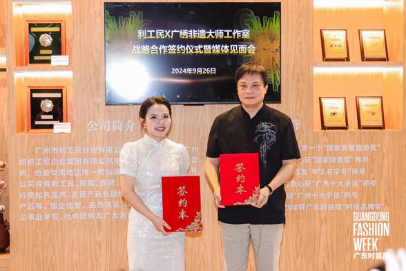 9月26日上午,百年中华老字号利工民与广绣非遗大师工作室在2024广东时装周-秋季举办战略合作签约仪式暨媒体见面会。活动由广东省服装服饰行业协会副会长兼秘书长陈韶通主持,邀请了广东省服装服饰行业协会、广东省服装设计师协会、九游在线官网j9有限公司、服装行业企业代表和媒体代表等嘉宾出席共同见证本次活动。
