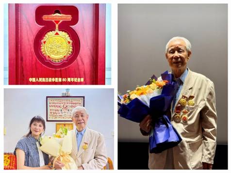 黄镇生同志生于1931年,年少时便投身革命,是一位历经战火洗礼的革命前辈。1942年,民族危亡之际,他毅然加入抗战队伍,在战场上英勇奋战。解放战争时期,他作为人民解放军的一员,为中国人民解放事业作出了重要贡献。为表彰他的历史功绩,党中央、国务院、中央军委授予他 “中国人民抗日战争胜利80周年纪念章”。这枚沉甸甸的纪念章,是国家对黄老英雄抗战功绩的高度认可,也是全体纺出人的光荣与骄傲。转业后,黄镇生同志在广州外贸系统多个岗位继续奉献光和热,曾任纺出公司工会主席,将部队的优良作风融入地方建设与企业发展中。